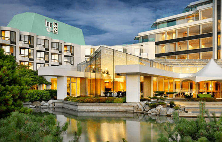 The Inn at Laurel Point is a quiet oceanside retreat in BC’s capital city. Enjoy the harbour view from your private patio and listen to the quiet song of distant geese and sailboat rigs clinking in the breeze. Be sure to grab a bite from the hotel’s Aura restaurant—it’s a delight! View hotel website »